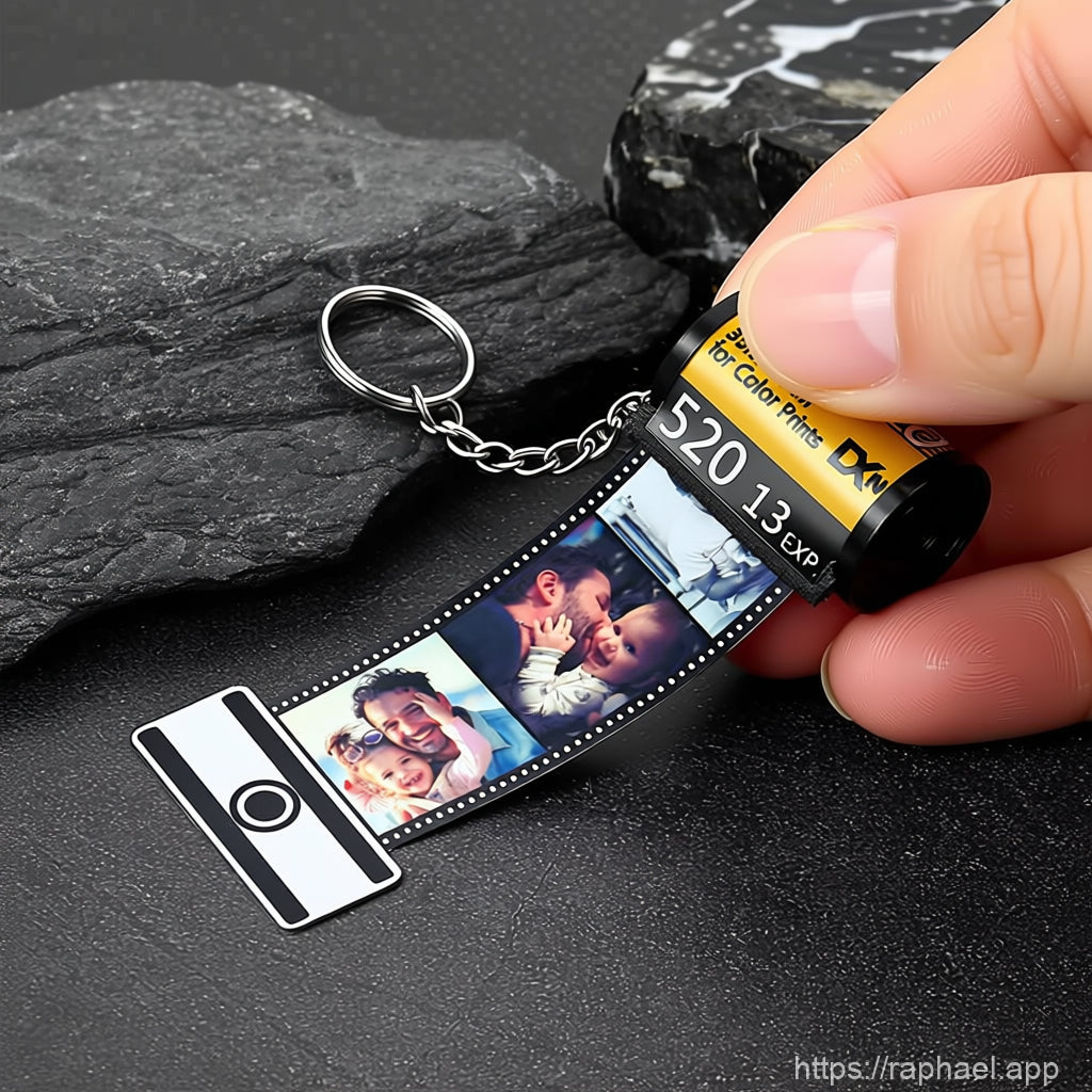 Oui ! Indiquez votre texte dans le champ “Donner un nom a votre porte-clé” lors de la commande. Il sera ajouté sur la pellicule.